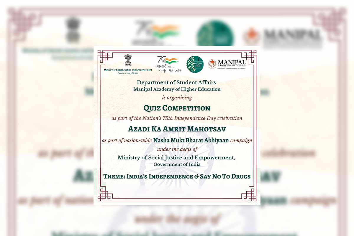 The Department of Student Affairs, Manipal Academy of Higher Education (MAHE), Manipal, will be organizing a Quiz competition on 04-08-2022 for PUC students as part of the celebration of Azadi Ka Amrit Mahotsav. The theme for the quiz competition will be "INDIA'S INDEPENDENCE & SAY NO TO DRUGS." The last date for the registration is 2nd August 2022.