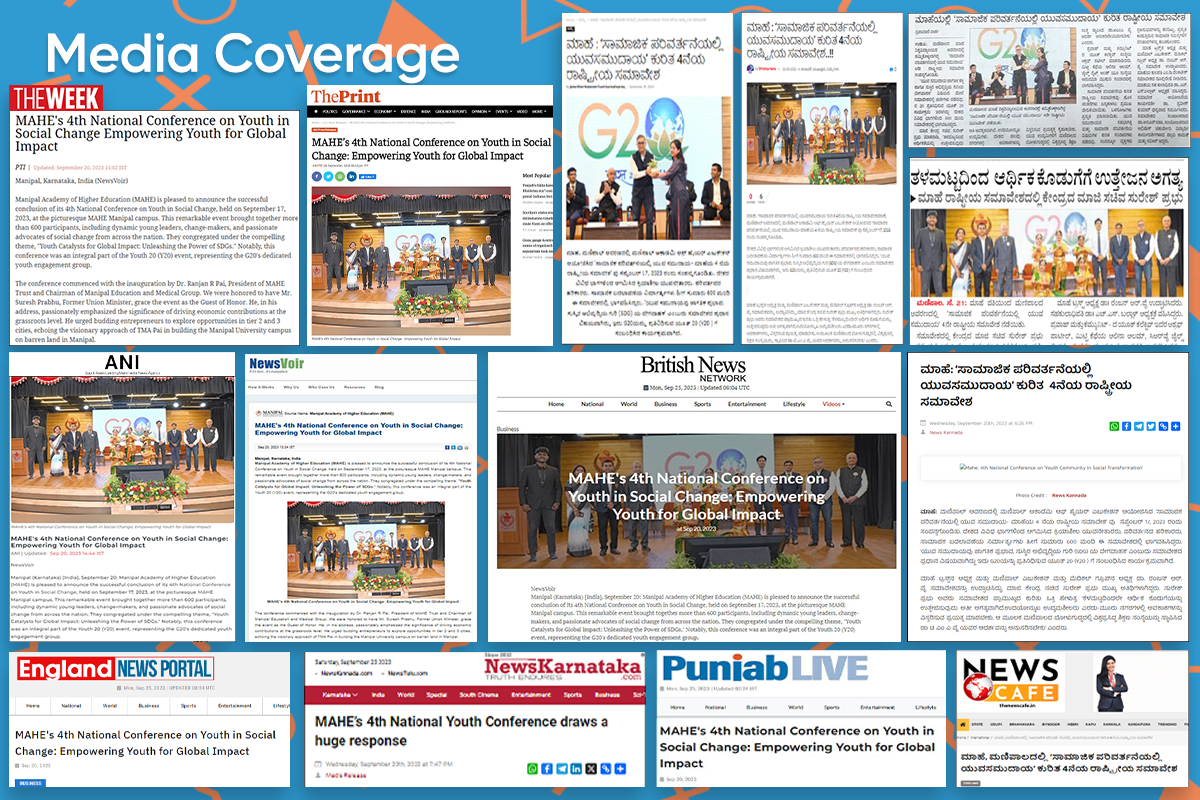 Manipal 17 September 2023: Manipal Academy of Higher Education (MAHE) is pleased to announce the successful conclusion of its 4th National Conference on Youth in Social Change, held on September 17, 2023, at the picturesque MAHE Manipal campus. This remarkable event brought together more than 600 participants, including dynamic young leaders, change-makers, and passionate advocates of social change from across the nation. They congregated under the compelling theme, "Youth Catalysts for Global Impact: Unleashing the Power of SDGs." Notably, this conference was an integral part of the Youth 20 (Y20) event, representing the G20's dedicated youth engagement group.