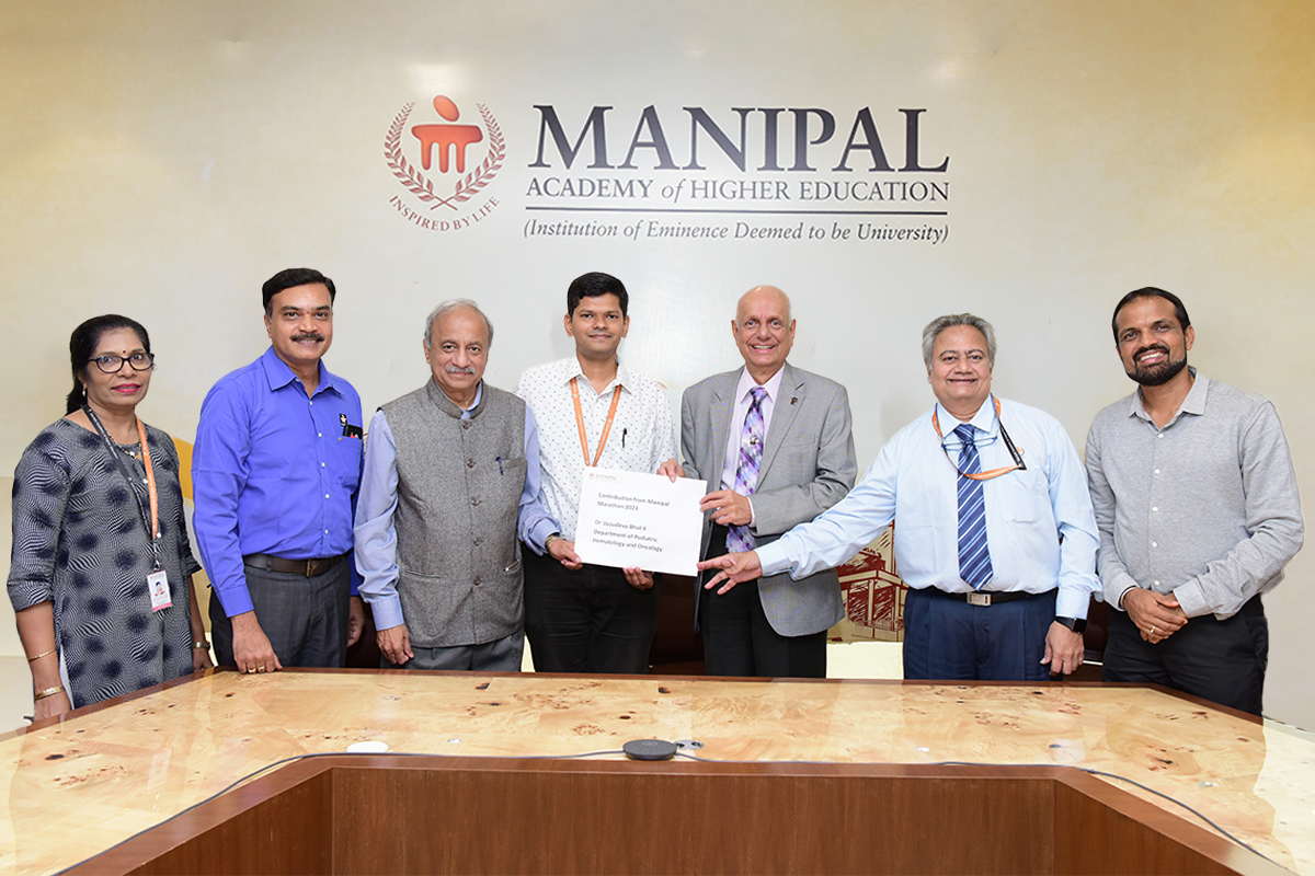 The event raised a significant amount of funds and the same was symbolically handed over to Dr Vasudeva Bhat K, Incharge, Division of Pediatric Hematology and Oncology, Kasturba Medical College, Manipal by Dr H S Ballal, Pro Chancellor, Lt. Gen (Dr) M. D Venkatesh, Vice Chancellor and Dr Sharath Kumar Rao, Pro Vice chancellor- Health sciences of MAHE Manipal.