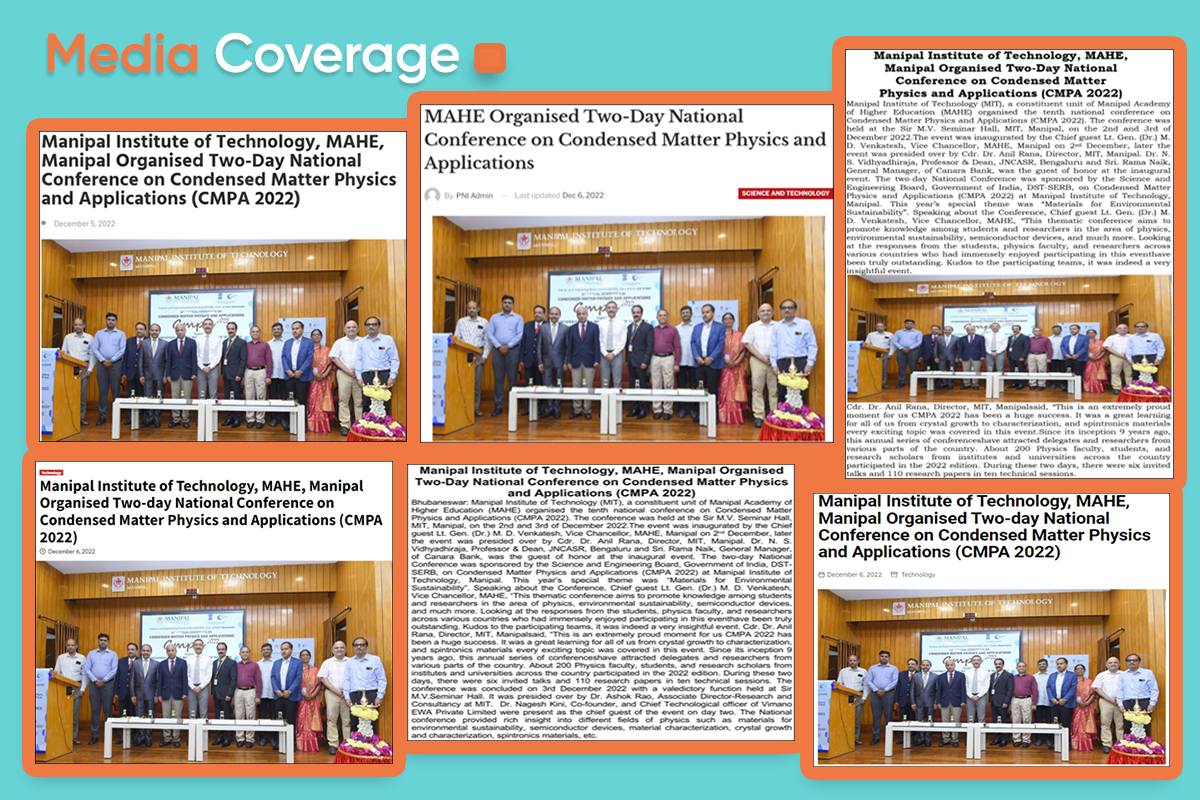 Cdr. Dr. Anil Rana, Director, MIT, Manipal said, “This is an extremely proud moment for us CMPA 2022 has been a huge success. It was a great learning for all of us from crystal growth to characterization, and spintronics materials every exciting topic was covered in this event.