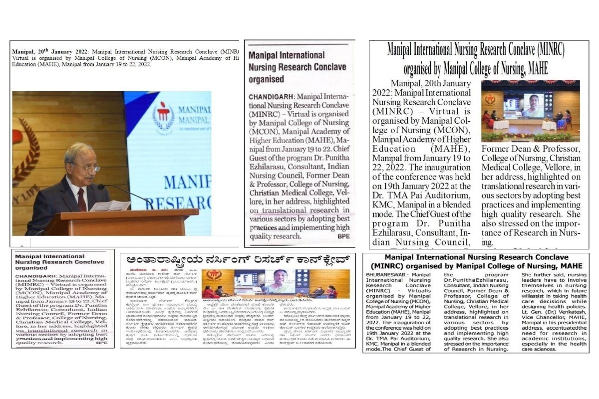 Manipal, 29th January 2022: Manipal International Nursing Research Conclave (MINRC) – Virtual is organised by Manipal College of Nursing (MCON), Manipal Academy of Higher Education (MAHE), Manipal from January 19 to 22, 2022.