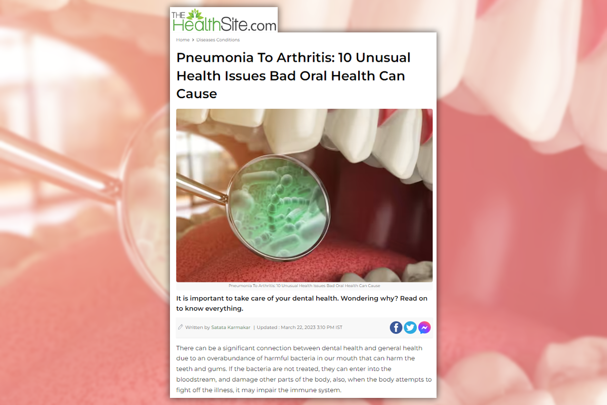 Manipal, 22nd March 2023: The author's article, "Pneumonia To Arthritis: 10 Unusual Health Issues, Bad Oral Health Can Cause” by Dr. Ramprasad V P and Dr. Deepak Kumar Singhal, Department of Public Health Dentistry, Manipal College of Dental Sciences (MCODS), Manipal.