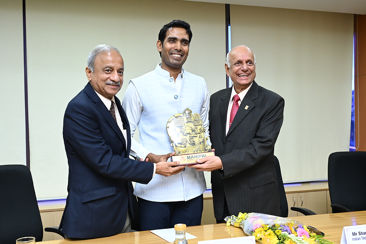Manipal; June 6th 2024: - Manipal Academy of Higher Education (MAHE) was thrilled to host the visit of Padma Shri Sharath Kamal, a celebrated Indian table tennis icon. Currently ranked world No. 34 in table tennis, Sharath Kamal is a Commonwealth Games gold medalist and the proud recipient of prestigious awards, including the Padma Shri, Khel Ratna, and Arjuna Award. His association with the Pro TT League in India and his connections with the Reliance family, who own the league, have solidified his status as a household name in Indian table tennis. He also competes in the French league and maintains significant ties with table tennis leagues globally.