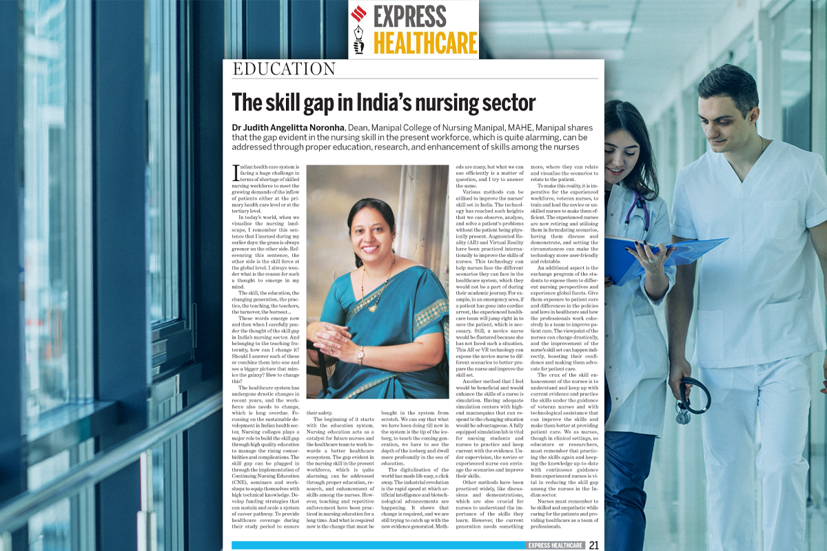 Manipal, 6th December 2023: The author's article, How can nursing colleges build the skill gap in India’s nursing sector? By Dr. Judith Angelitta Noronha, Dean, Manipal College of Nursing, (MCON), Manipal.