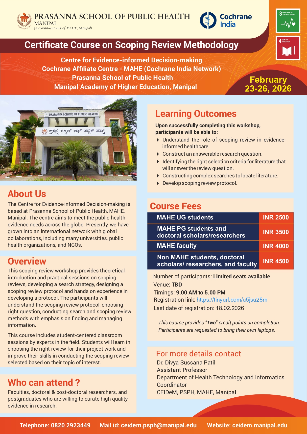 Prasanna School of Public Health offers multi-disciplinary programmes for both the industry and academia. We offer one undergratuate six postgraduate programmes and four certificate courses.