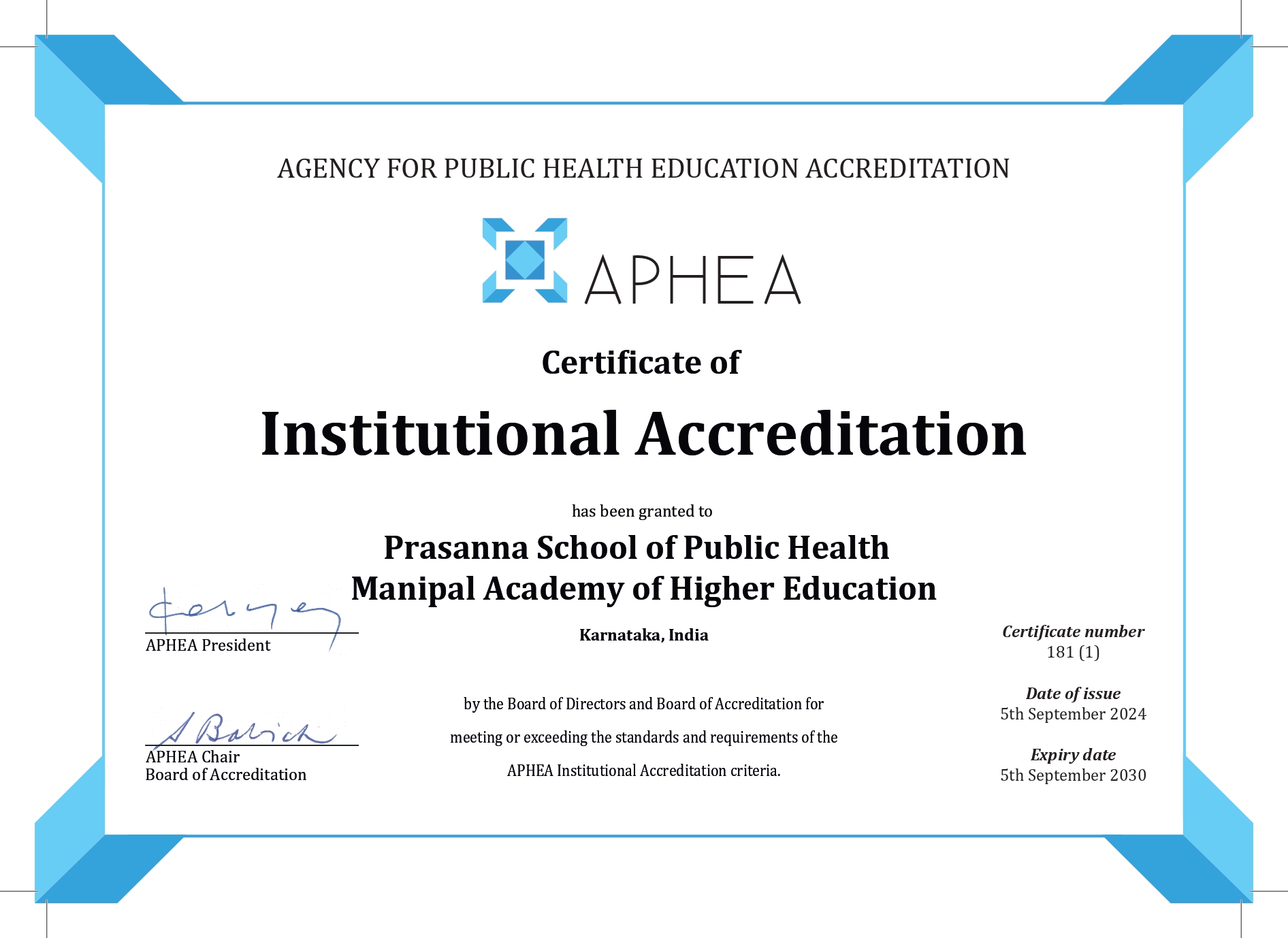 APHEA is the leading global accreditation agency for public health schools, programmes and training courses. Accreditation of Prasanna School of Public Health is a major milestone in our journey. This accreditation leads to; ensuring greater academic RECOGNITION on the global stage, promoting TRANSFERABILITY of public health education & training, increasing EMPLOYABILITY of public health graduates, and attesting the QUALITY of Public Health Workforce training. Our school is the only school in Asia at present and among the 11 schools across.