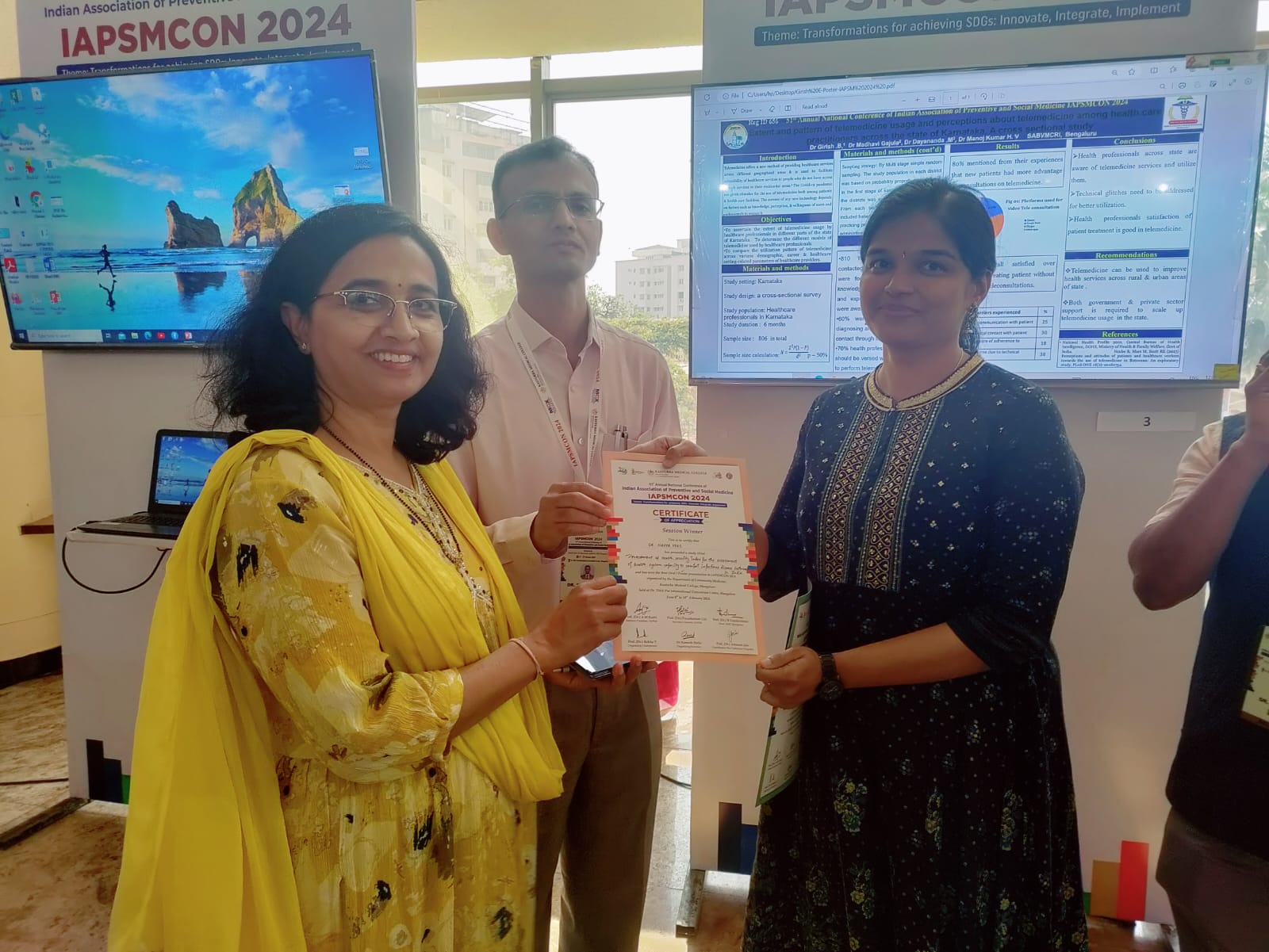 Dr Navya Vyas (Faculty, MPH Programme, Department of Health Policy [DoHP], Prasanna School of Public Health [PSPH], Manipal Academy of Higher Education [MAHE], Manipal) was Awarded the Best Poster Presentation (Session Winner) at the event.