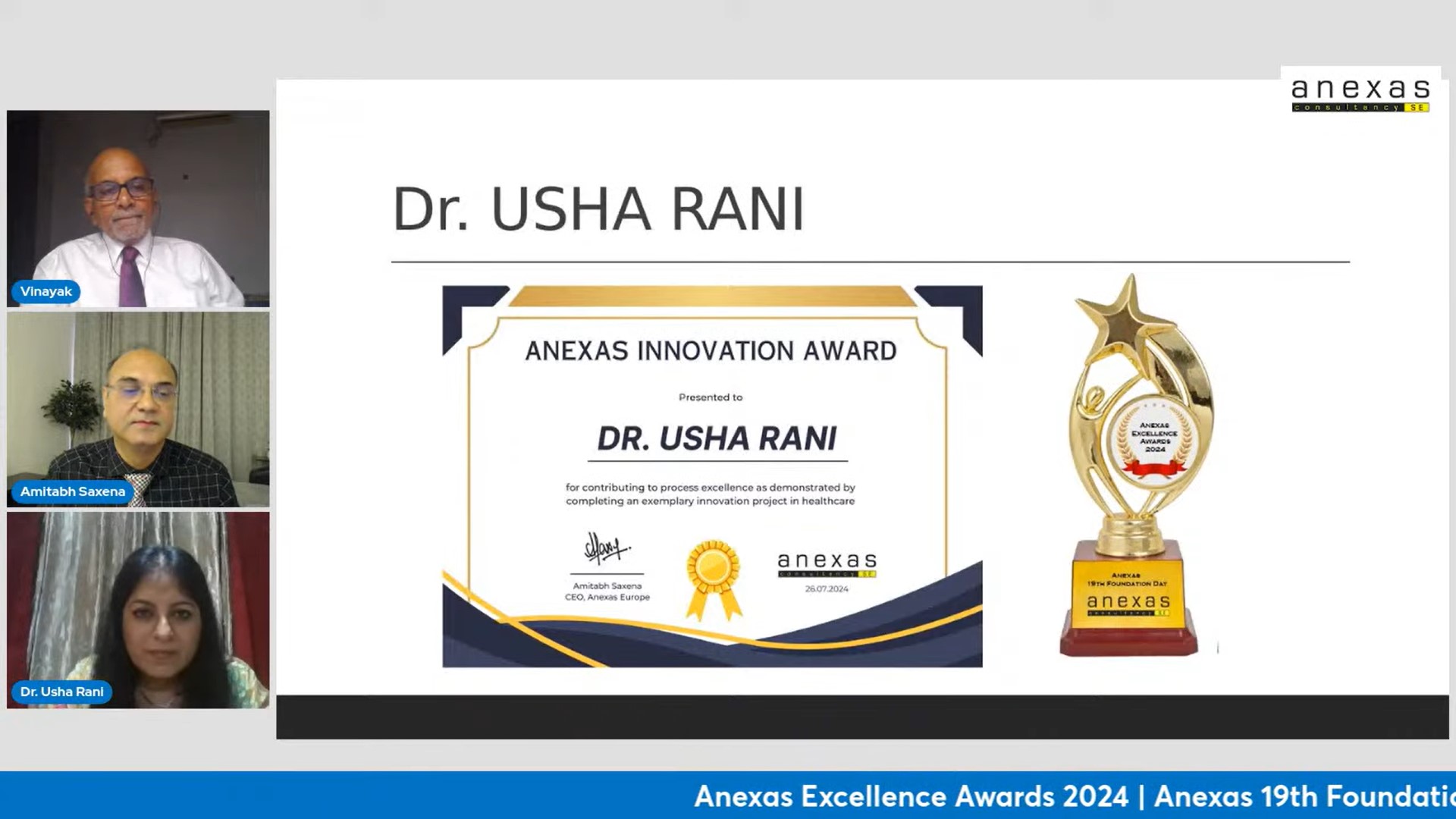 Dr Usha Rani, Coordinator, Manipal Health Literacy Unit ; Faculty, MHA Programme, Department of Social and Health Innovation, PSPH, won the Anexas Innovation Award as part of Anexas Global Excellence Awards 2024 for Contributing to Process Excellence as Demonstrated by Completing an Exemplary Innovation Project in Healthcare regarding her PhD Study Topic “Development and Evaluation of Prevention Bundle for Neonatal Healthcare – Associated Infections (HAIs) – an Interventional Study”.
