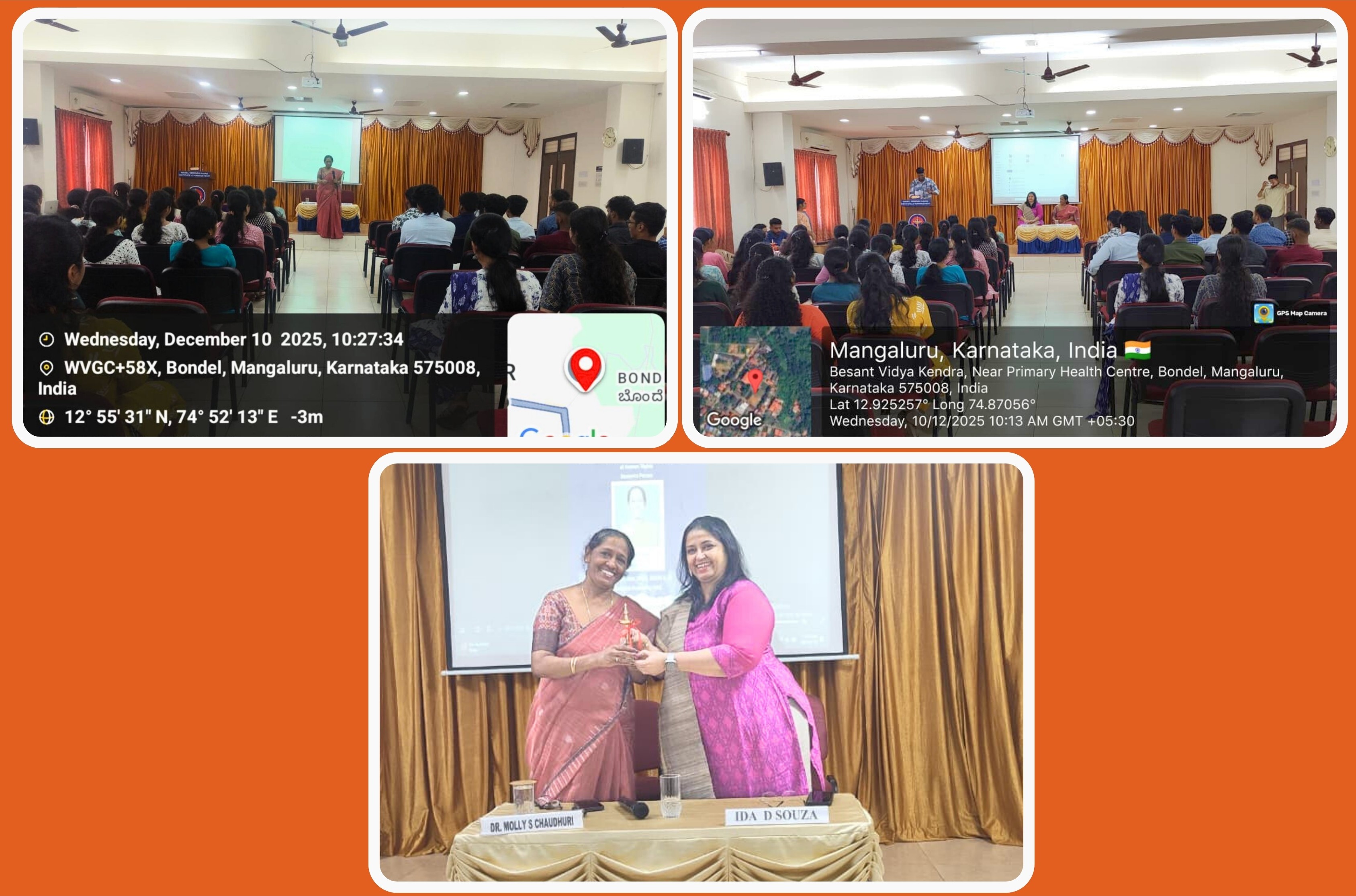 Ms Ida D’Souza (Faculty, Department of Social and Health Innovation [DSHI], PSPH, Manipal) as a Chief Guest addressed the MBA students of Manel Srinivas Nayak Institute of Management (MSNIM), Besant Campus, Bondel, Mangaluru at 10:00 hours IST on December 10, 2025 in the Swarna Academy Hall delivering a Guest Talk as part of the Human Rights Day celebration, offering an insightful session on “From Essential to Self-Actualisation – the Gen Z Navigation of Human Rights.” The interaction highlighted how young adults can understand and exercise their rights in today’s changing social environment.