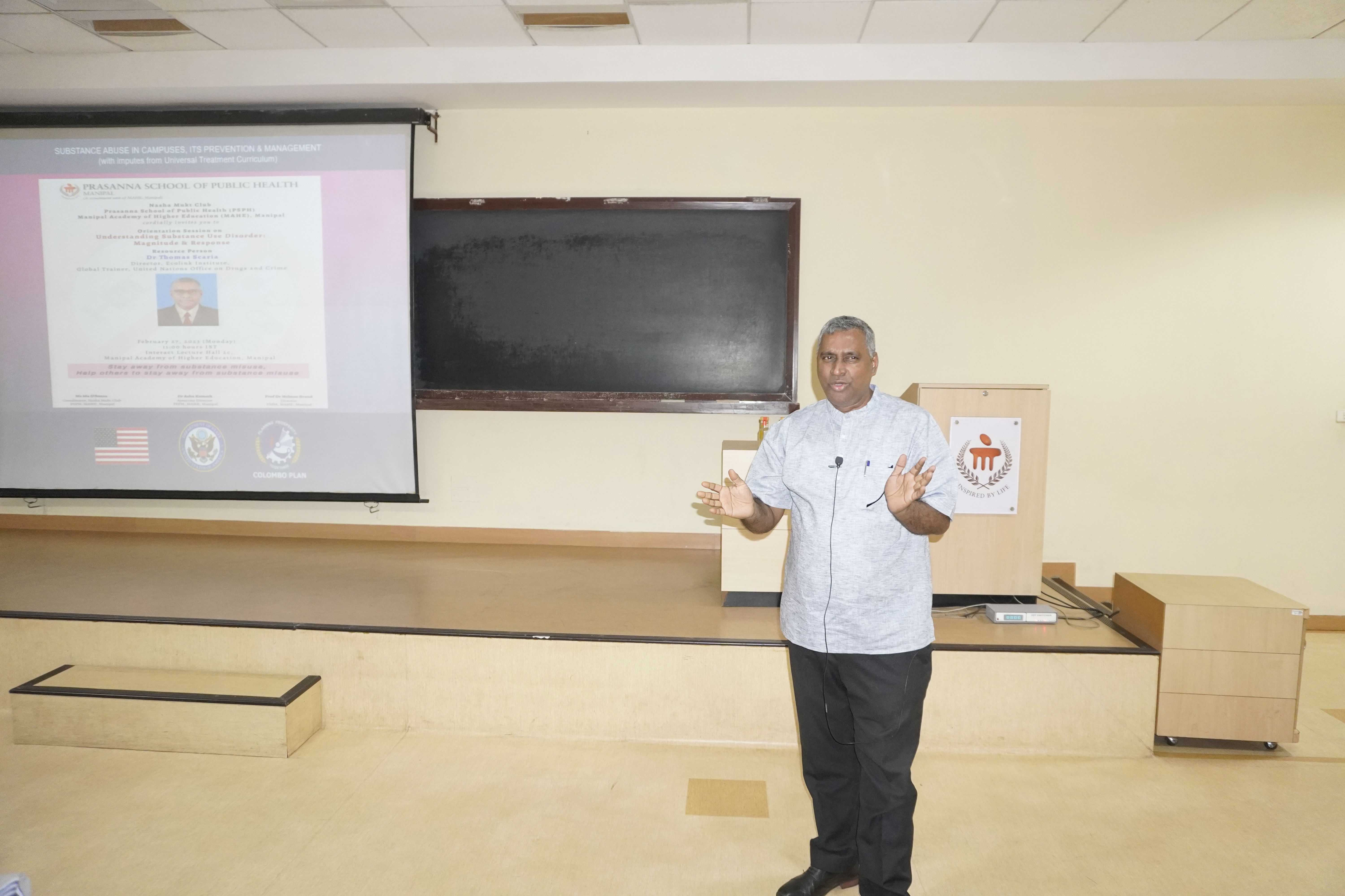 Nasha Mukt Club, PSPH, MAHE, Manipal organized an Orientation Session on “Understanding Substance Use Disorder: Magnitude and Response” with Dr Thomas Scaria (Director, Ecolink Institute, Global Trainer, United Nations Office on Drugs and Crime) was the resource person.