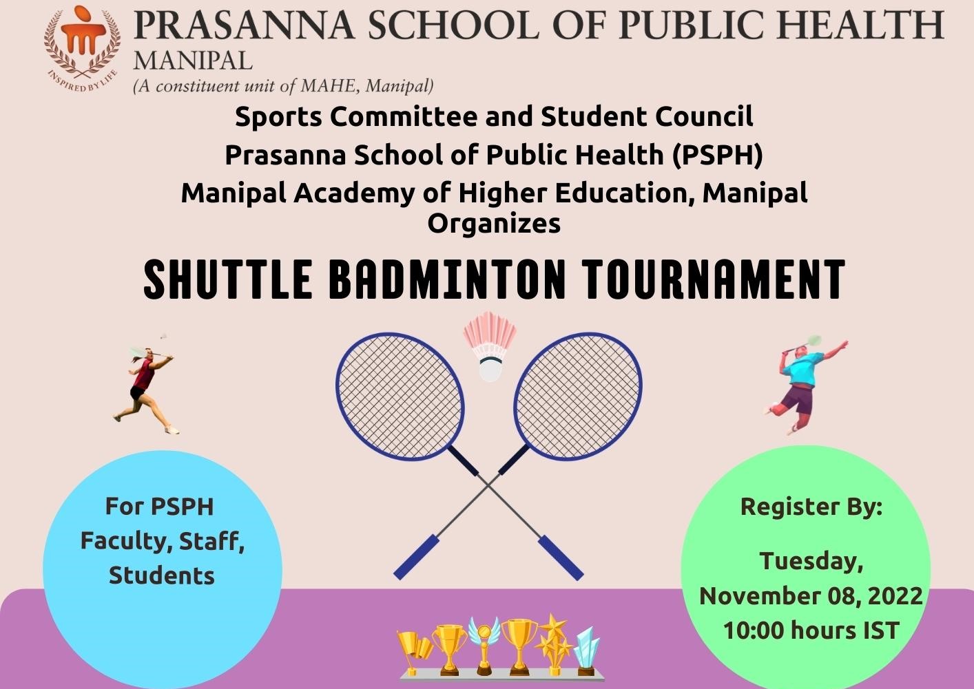 Sports Committee and Student Council, Prasanna School of Public Health (PSPH), Manipal Academy of Higher Education, Manipal organized PSPH Shuttle Badminton Tournament on November 27, 2022.