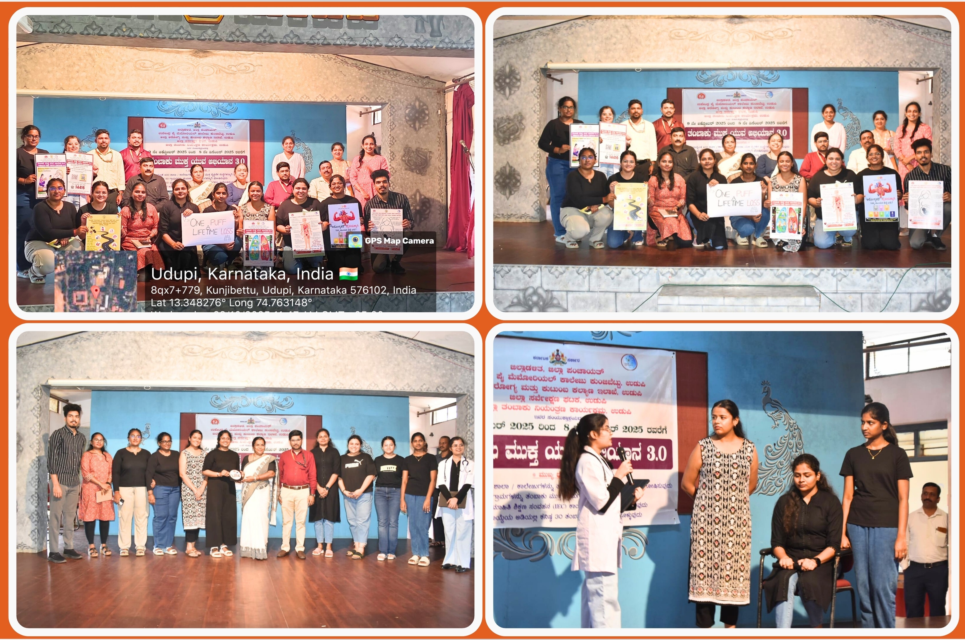 As part of the District Tobacco Control Programme organised by the District Health and Family Welfare Department, a group of enthusiastic Public Health students from Manipal Academy of Higher Education (MAHE), Manipal conducted an awareness activity on the harmful effects of tobacco use at Upendra Pai Memorial College, Udupi on October 29, 2025.