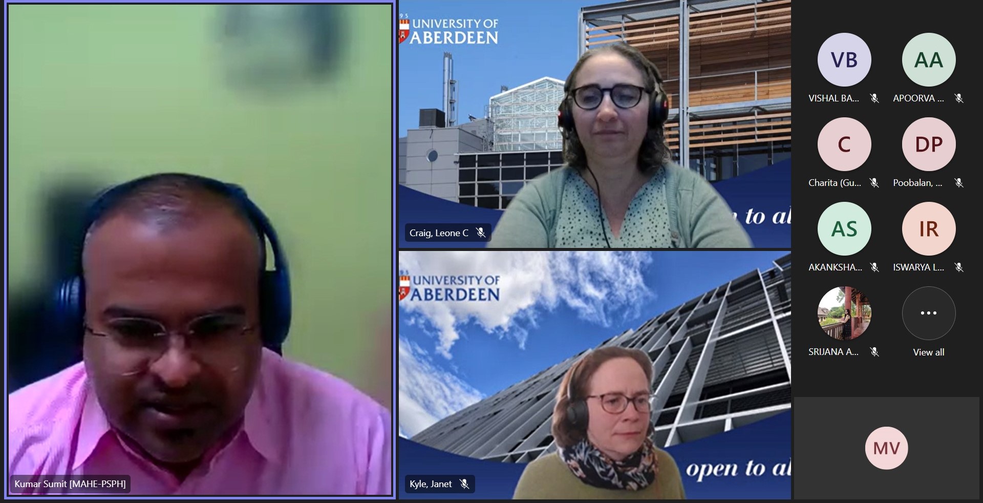 MPH Programme, Department of Health Policy, PSPH, Manipal in collaboration with the Department of Public Health, Institute of Applied Health Sciences, University of Aberdeen, Scotland, UK organized a Virtual Seminar on “Diet and Health: Thinking Beyond Nutrients” on Friday, November 24, 2023.