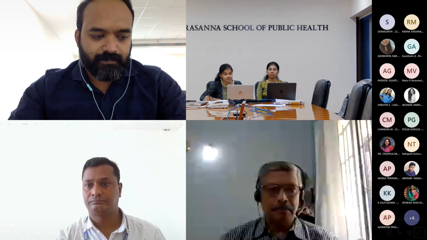 Dr N Devadasan, Public Health Specialist, Adjunct Faculty- Institute of Public Health, Bengaluru; Dr Nagappa S Karabasanavar, Associate Professor and Head, Department of Veterinary Public Health and Epidemiology, Veterinary College, Hassan and Dr Shafeeq K Shahul Hameed Scientific Officer, Centre for Brain Research, Indian Institute of Science, Bengaluru; MPH Alumnus, [2010-2012 batch] were the resource persons. The topic discussed were Health Systems Response to Zoonotic Disease and The Role of Veterinary Services in Zoonotic Disease Preparedness.