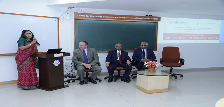 Prasanna School of Public Health, MAHE, Manipal and the George Institute for Global Health, India jointly Organized the One of a Kind Certificate Course 'Leadership in Public Health'. This course is a collaborative effort by national and international public health and management leaders from Manipal Academy of Higher Education, George Institute for Global Health, India, selected mentors from University of Minnesota, USA and Maastricht University, the Netherlands. As part of the Course, Face to Face Session was Organized for the Participants during February 24 to 28, 2020 in the premises of MAHE, Manipal.