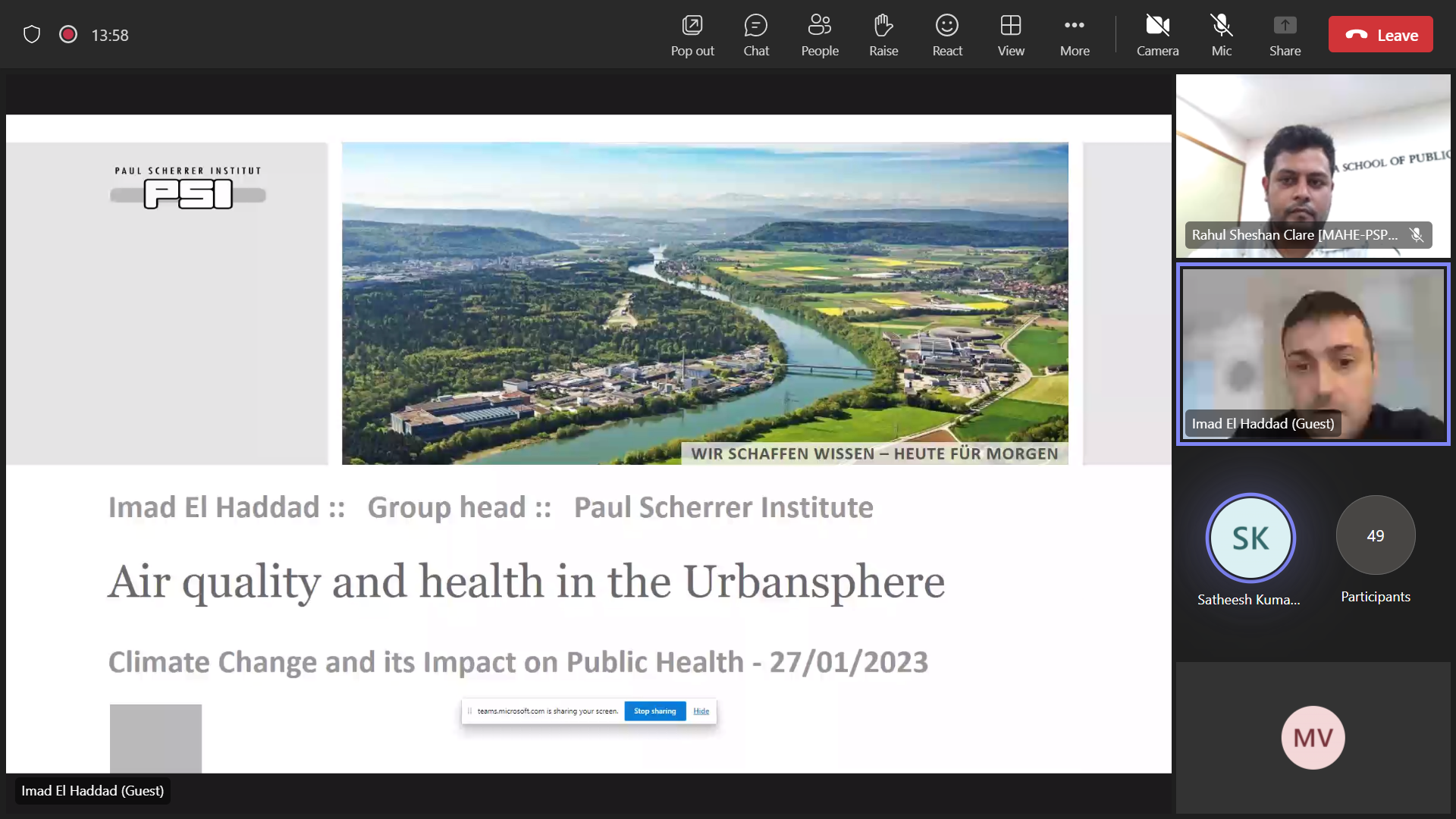 PSPH, MAHE, Manipal organized Prof Rajani Prasanna Endowment Lecture Series on Climate Change and its Impact on Public Health - Lecture VII: Sources of Particulate Pollution around the World and Health Implications on Monday, February 20, 2023.