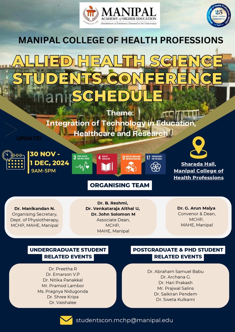 Venue: Sharadha Hall, Manipal College of Health Professions