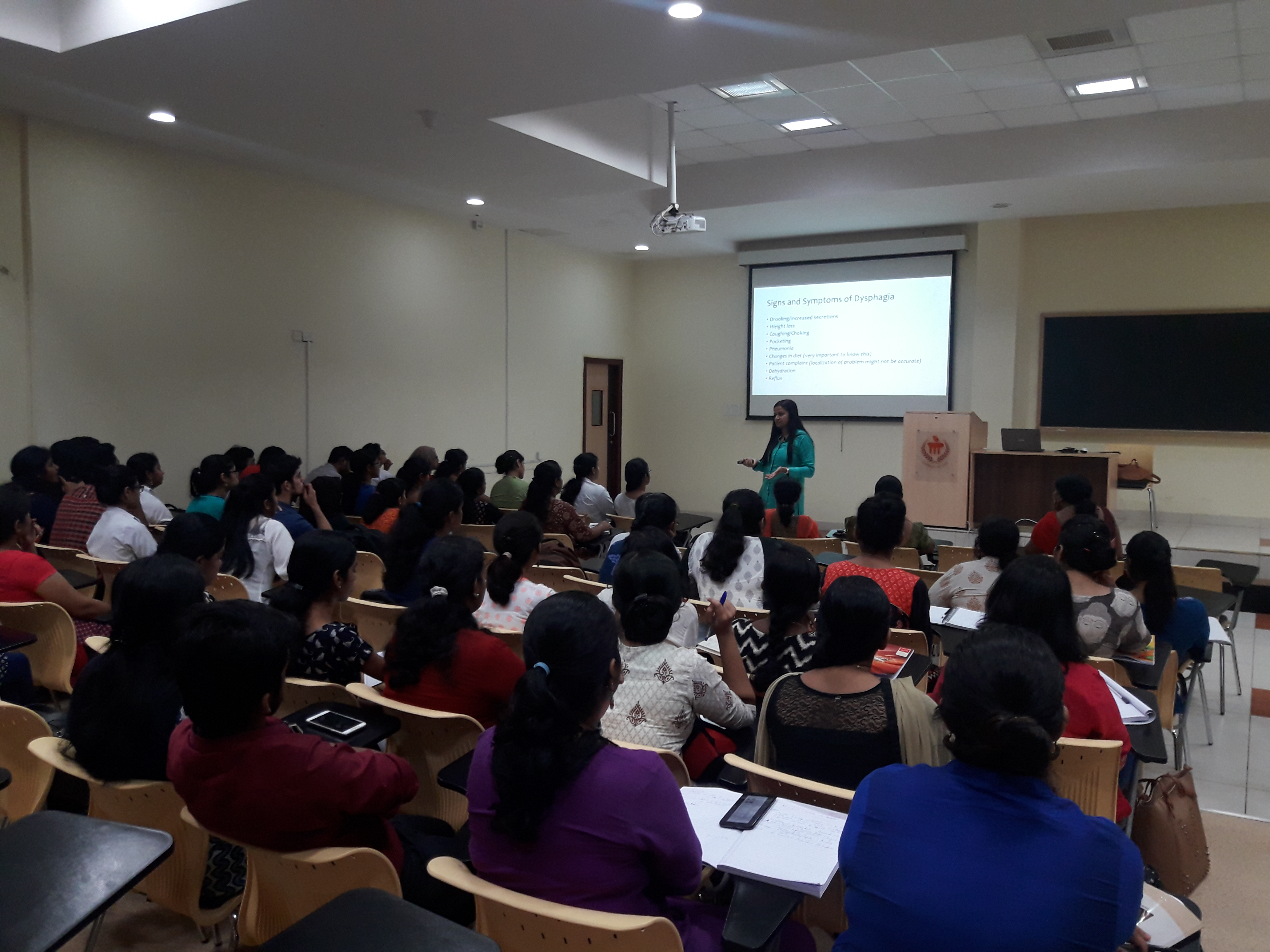 Her input on adult dysphagia was beneficial to all. Ms. Sheela S, Alumni coordinator and Dr. Krishna, HOD, facilitated the meeting and expressed appreciation to Ms. Shruthi for sharing her research experiences with the current final year undergraduate and postgraduate students.