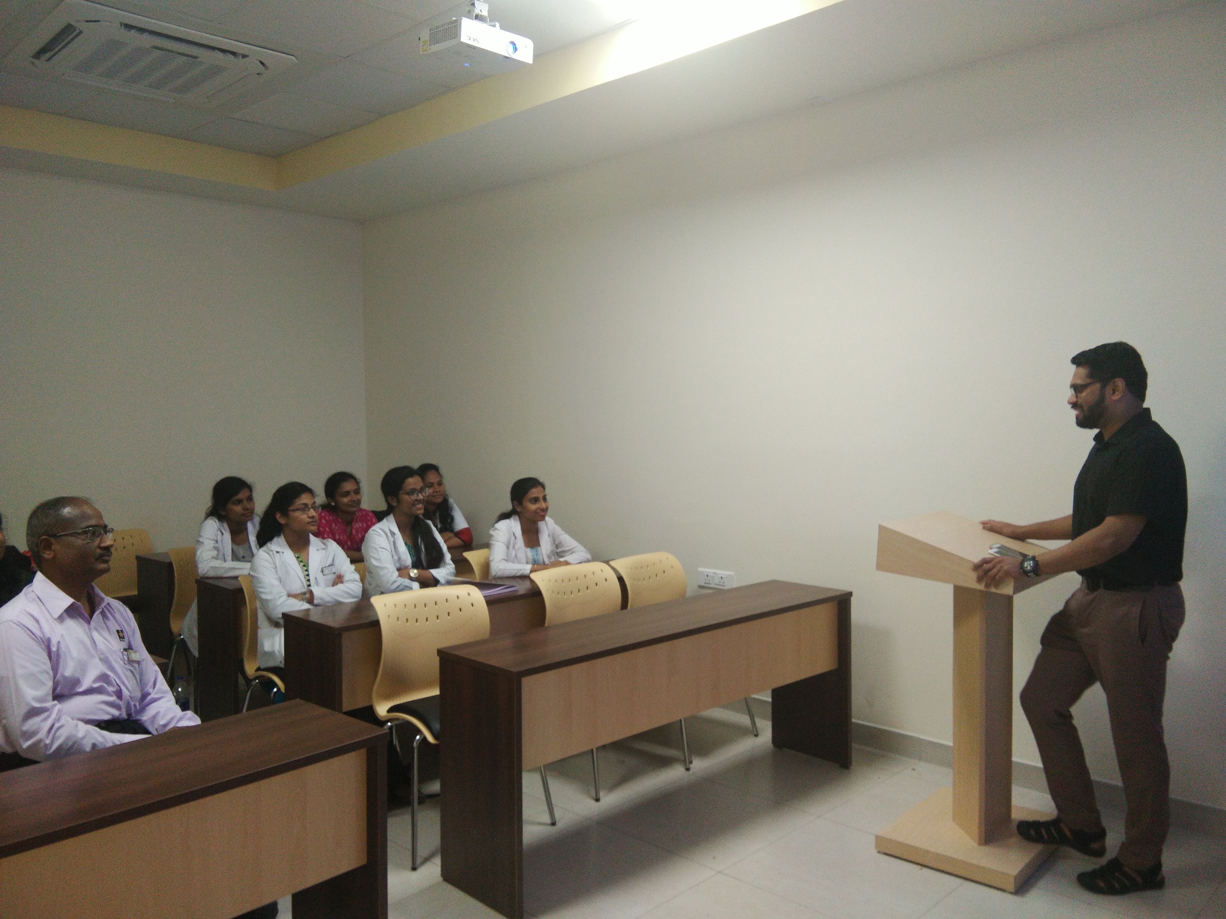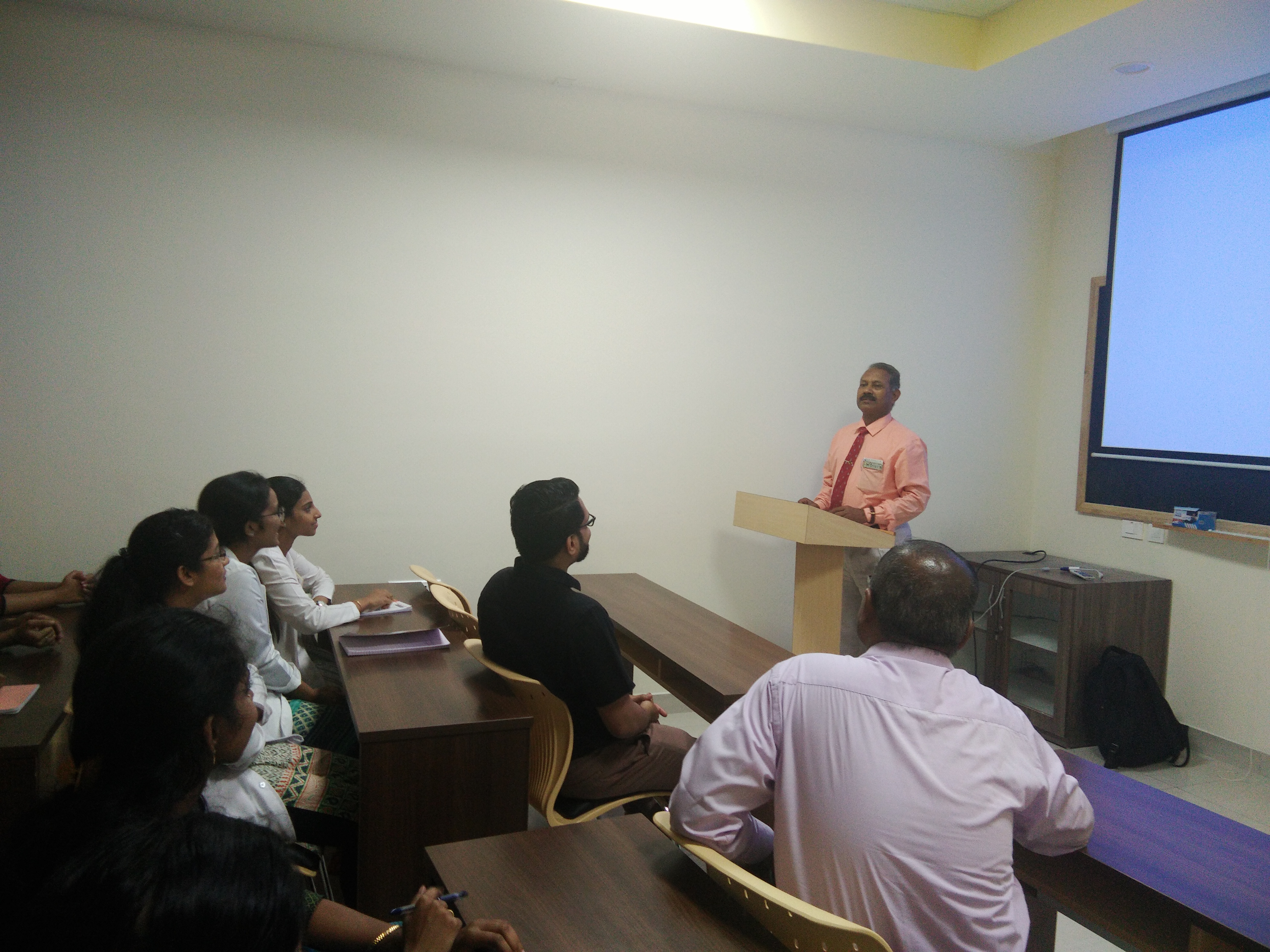 Dr. Muhammed K P Ayas, who did graduation (2002-07) and post-graduation (2007-2009) visited Department of Speech and Hearing on 10th September, 2018. He worked as Assistant Professor at Dept. of Speech and Hearing for three years and also completed his Ph.D as an in-service candidate (2011-2015). He is currently working as ‘Clinical Audiologist and Assistant Professor’ at ‘University Hospital Sharjah’, Sharjah, UAE. A lecture (2.00 pm- 3.00 pm) for 1st M.Sc (Audiology) students (13 in number) was organized at LH-5 classroom by Dept. of Speech & Hearing, SOAHS. He shared information on Interpretation of Vestibular Tests. His input on aspects of vestibular disorders was beneficial to students.