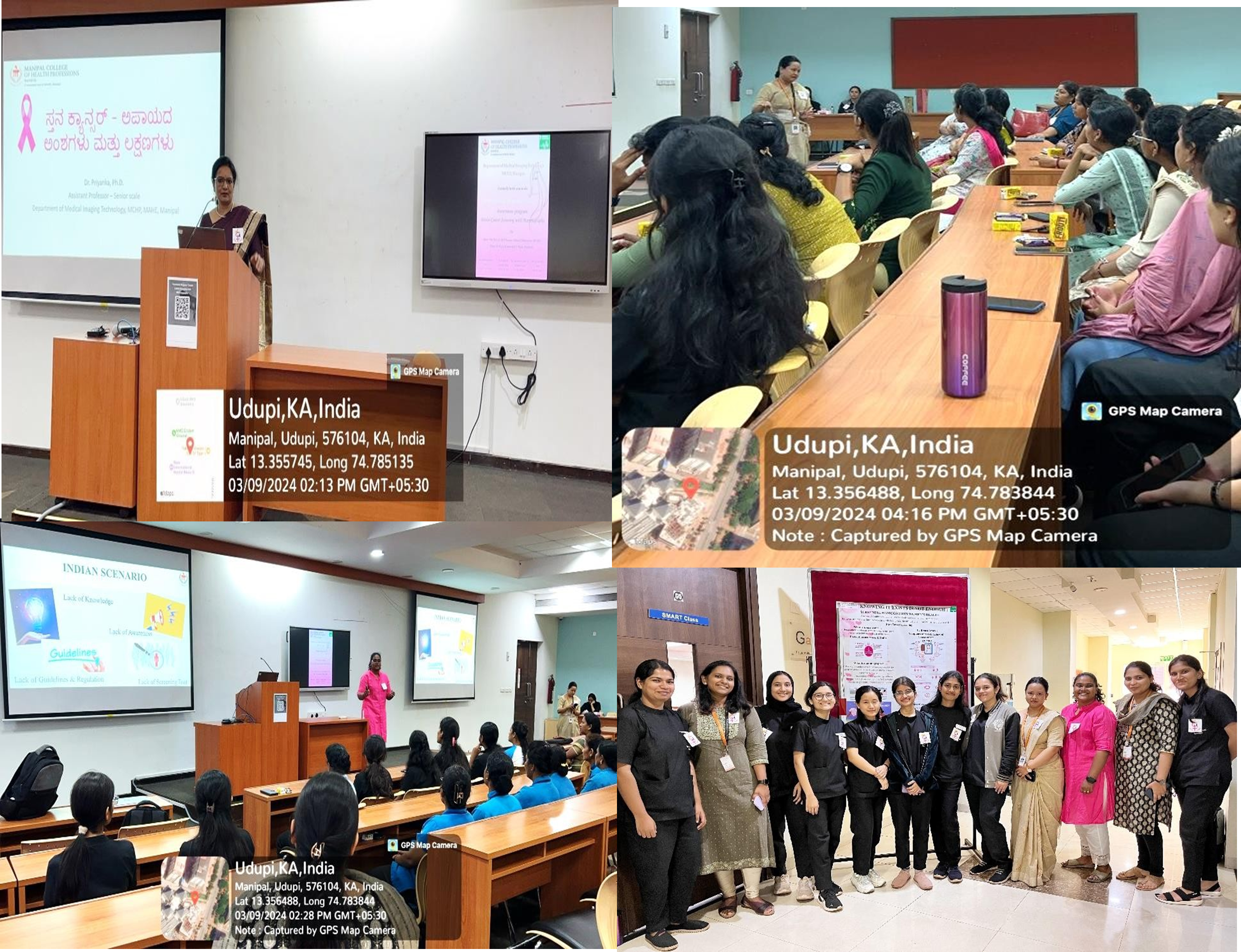 On account of International Women’s Day, the Department of Medical Imaging Technology, MCHP, MAHE, Manipal organized an Awareness program on “Breast Cancer Screening with Mammography” for Quess Staffs and Teaching and Non-Teaching Staffs of MCHP on 9th March 2024, Smart classroom, MMMC ground floor, MCHP. The session was conducted in both Kannada and in English at 02:00 pm. A total of 37 participants attended the session.