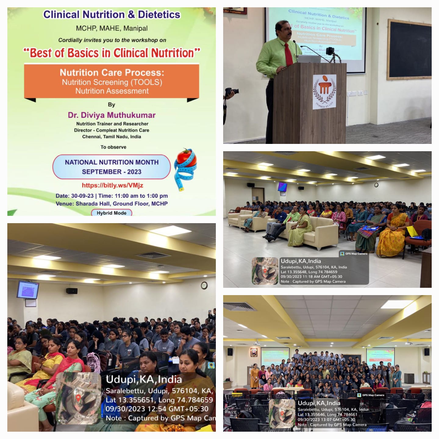 On the occasion of National Nutrition Month September 2023, the Clinical Nutrition and Dietetics program, Manipal College of Health Professions organized a Nutrition Workshop “Best of Basics in Clinical Nutrition” focused on advance nutrition care process and care plan, for both students and faculties of Allied health science on 30th September 2023 from 11am to 1pm. The esteemed guest speaker, Dr Diviya Muthukumar is a nutrition trainer and researcher, Director of Complete Nutrition Care, Chennai, Tamil Nadu.
