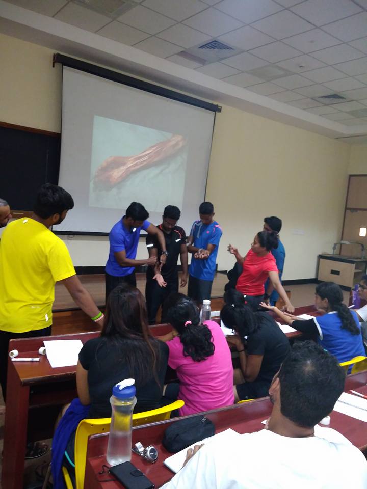 Prabu Raja.G, demonstrating to the workshop attendees the anatomical connections of the anterior sling.