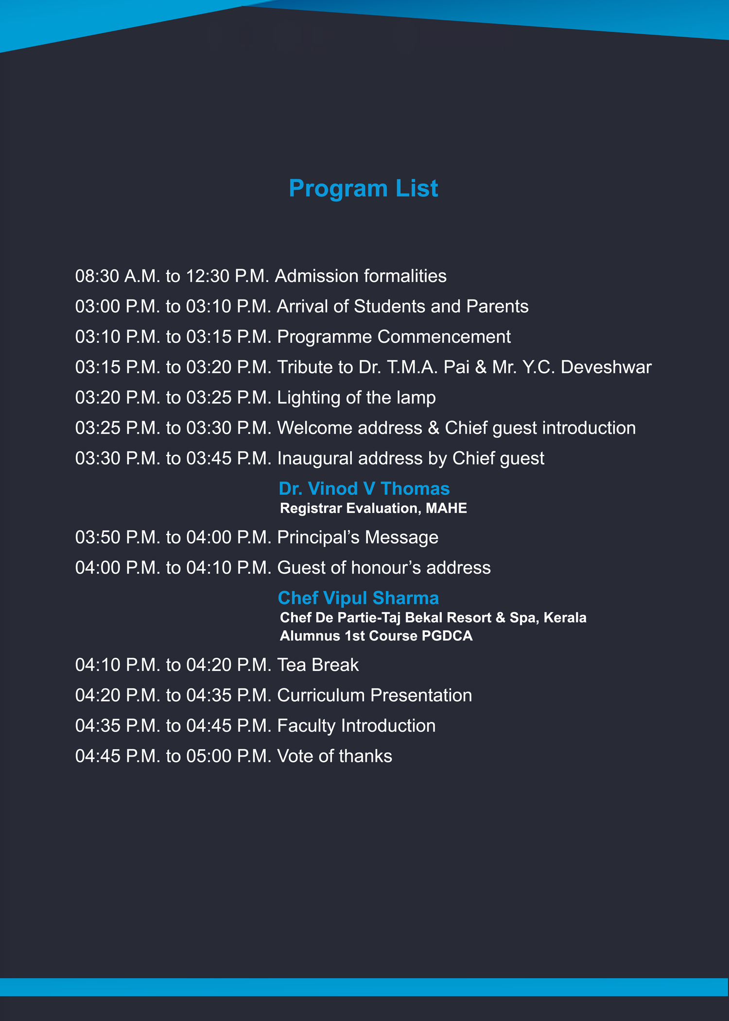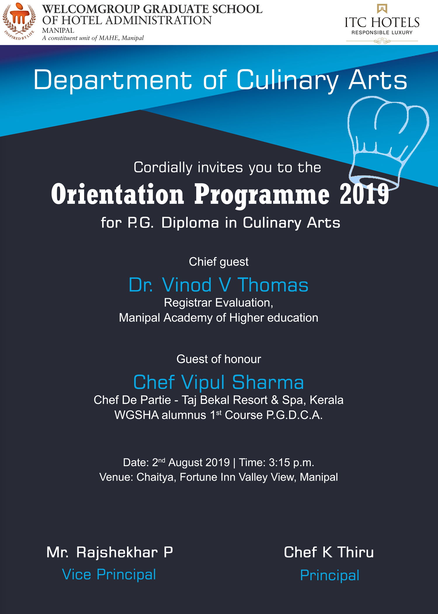 Orientation Programme 2019 for PG Diploma in Culinary Arts