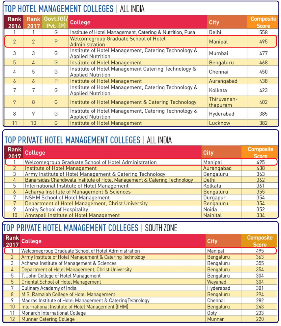 With immense pleasure we are pleased to inform that as per The Week Hansa Research Survey-2017 (The Week Magazine, Dated 18th June 2017) “Welcomgroup Graduate School of Hotel Administration, Manipal Academy of Higher Education, Manipal” has secured,